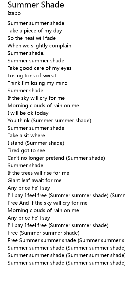 I'll pay I feel free (Summer summer shade) (Summer summer shade) |