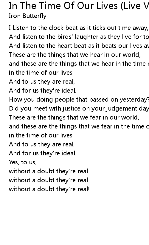 In The Time Of Our Lives (Live Version) Lyrics