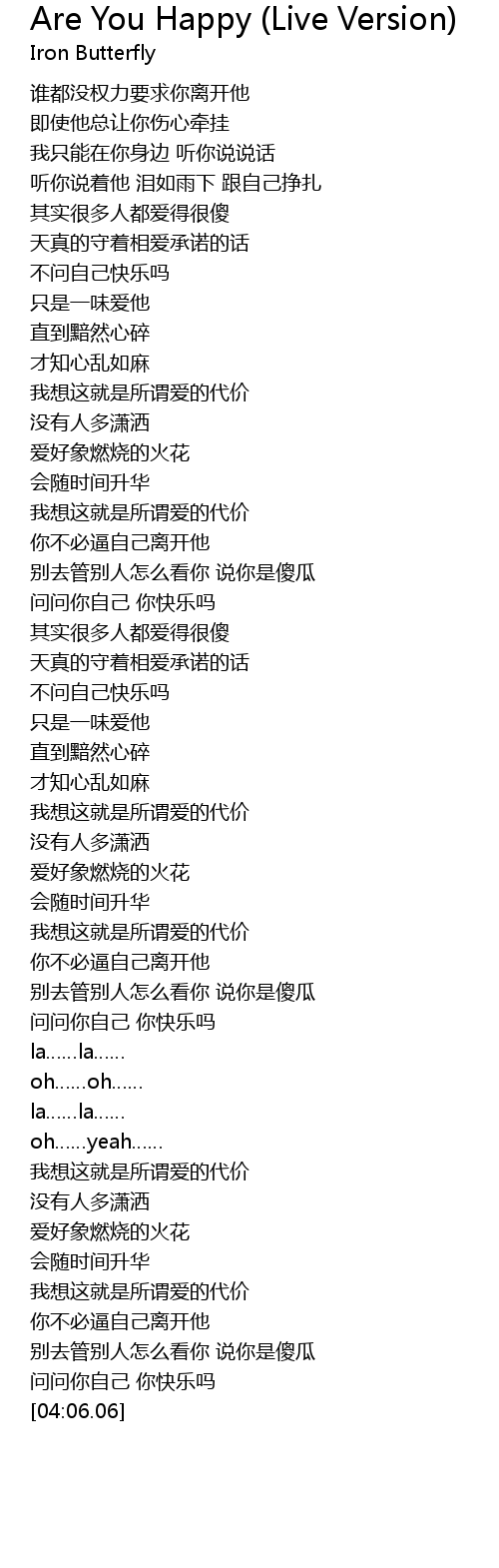 | [02:24.18] | bu wen zi ji kuai le ma |