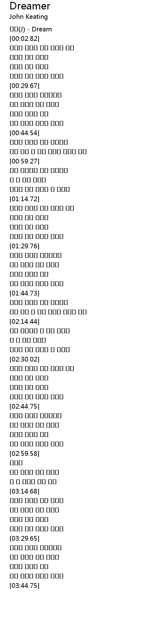 | [00:00.15] | 제이(J) - Dream |
