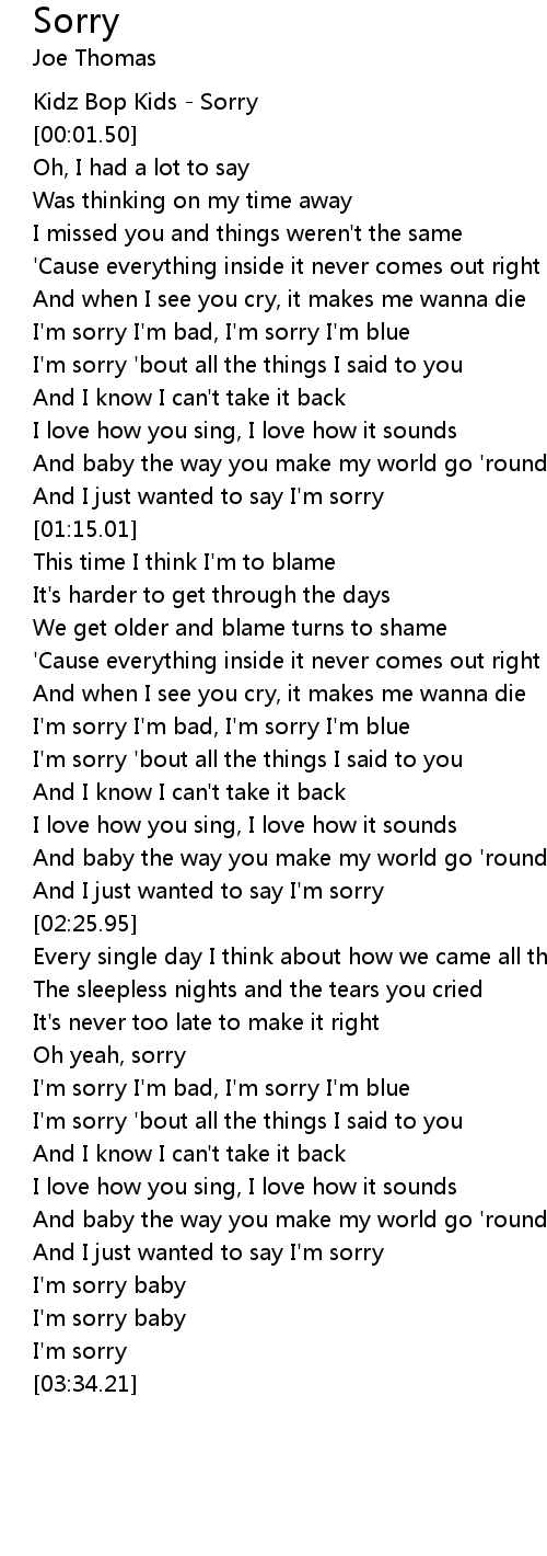 I'm sorry I'm bad, I'm sorry I'm blue |