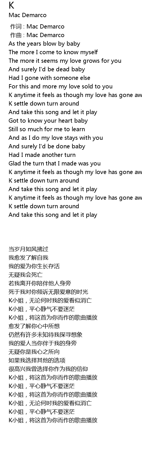 | [00:00.000] | 作词 : Mac Demarco |