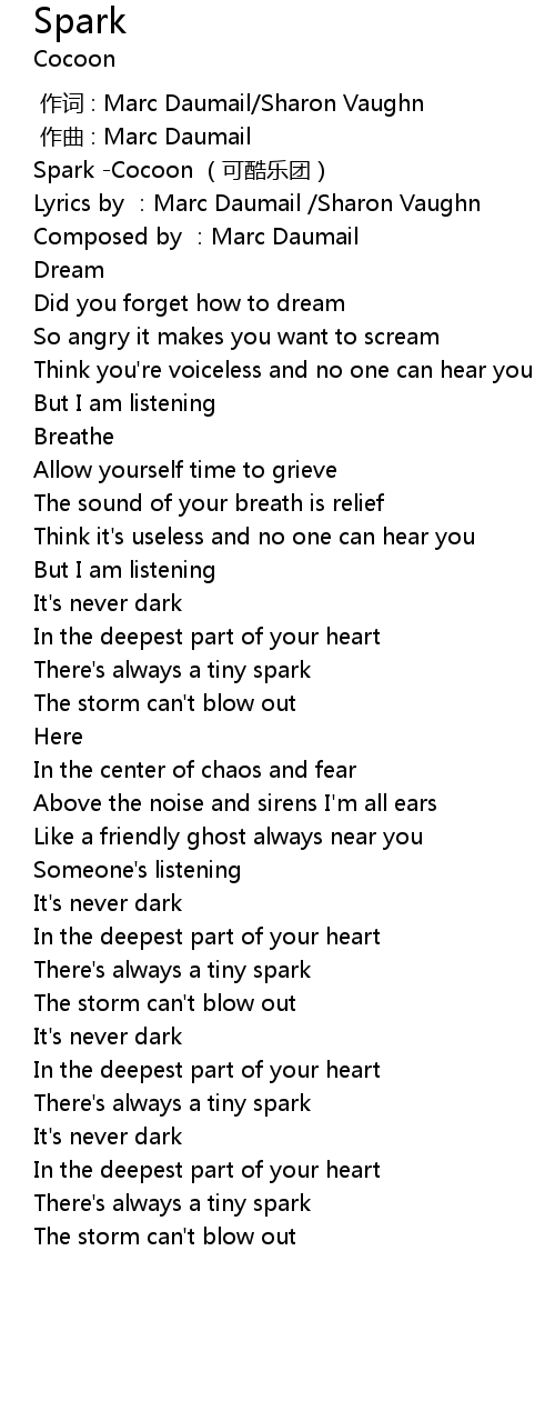 | [00:00.00] | Spark -Cocoon (可酷乐团) |