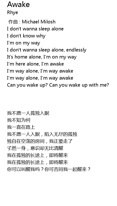 | [02:07.44] | I'm here alone, I'm awake |
