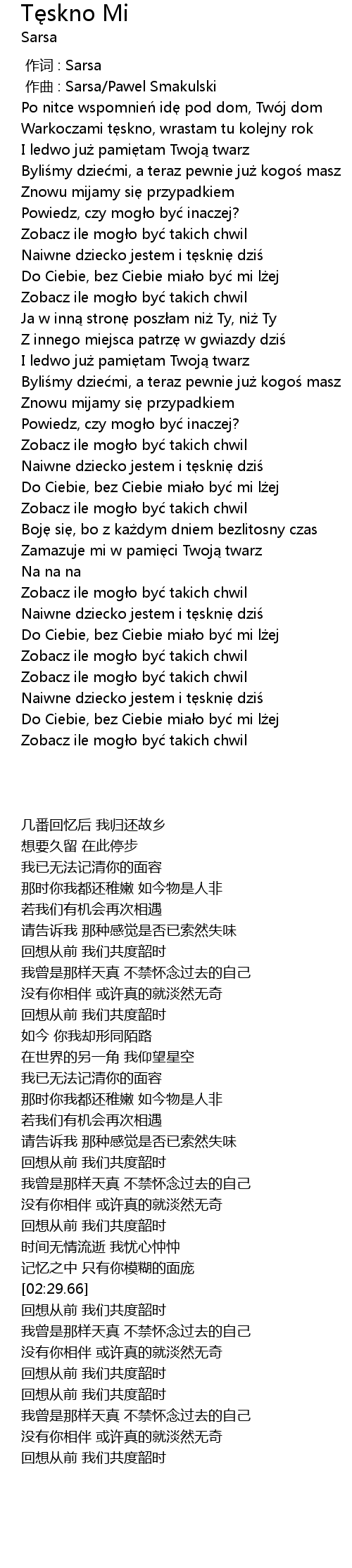 | [02:36.59] | Naiwne dziecko jestem i t skni dzi |