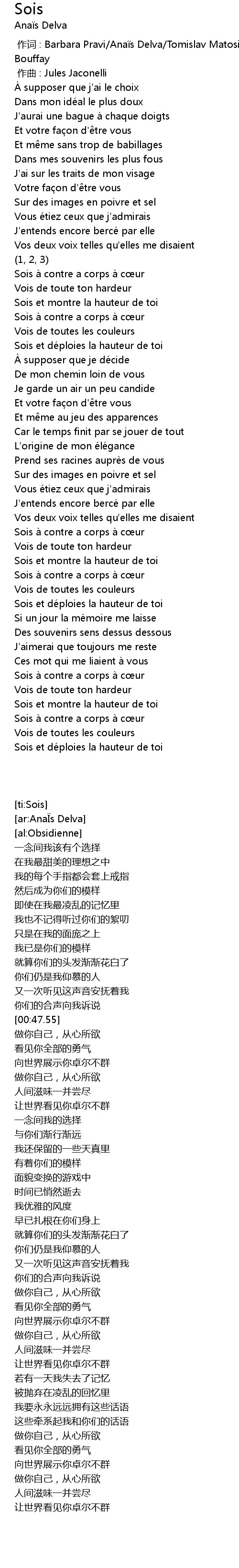 | [02:47.87] | Sois et dé ploies la hauteur de toi |