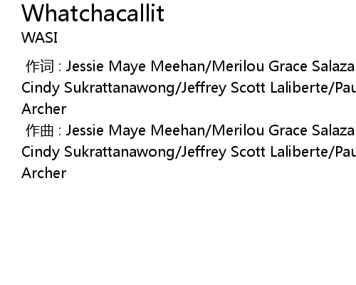 | [00:00.000] | 作词 : Jessie Maye Meehan/Merilou Grace Salazar/Kai Nakamura/Dulce Cindy Sukrattanawong/Jeffrey Scott Laliberte/Paul Rene Laliberte/Shelby Troy Archer |