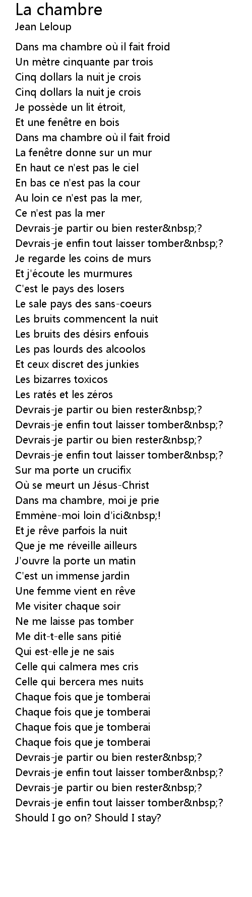 | Song | La chambre |