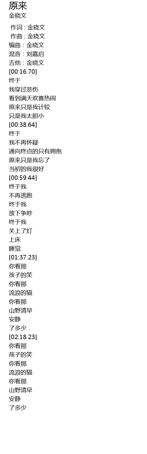 | [00:01.000] | zuò qǔ : jīn xiǎo wén |