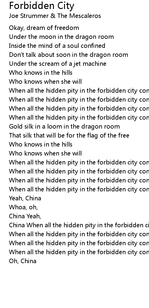 When all the hidden pity in the forbidden city comes out, oh, yeah |