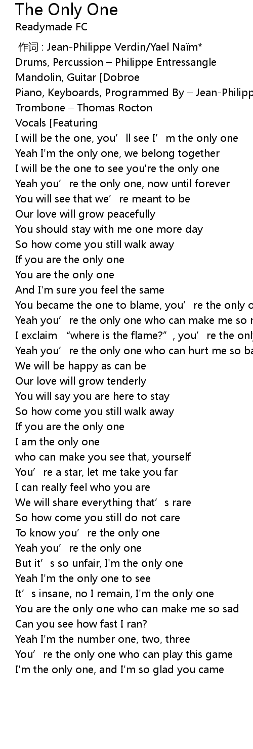 | [00:49.93] | You are the only one |