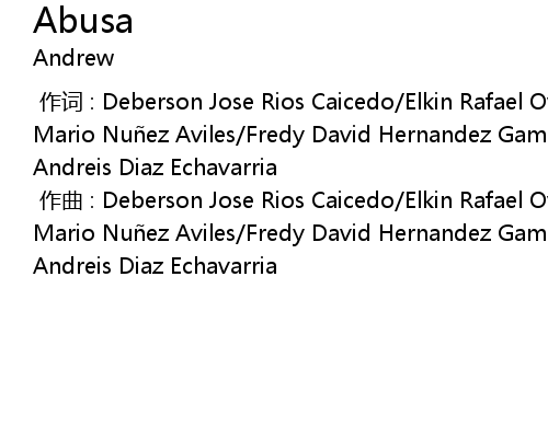 | [00:00.000] | 作曲 : Deberson Jose Rios Caicedo/Elkin Rafael Oviedo Llamas/Jose Mario Nuñez Aviles/Fredy David Hernandez Gamarra/Ronny Javier Carrasquilla/Luis Andreis Diaz Echavarria |
