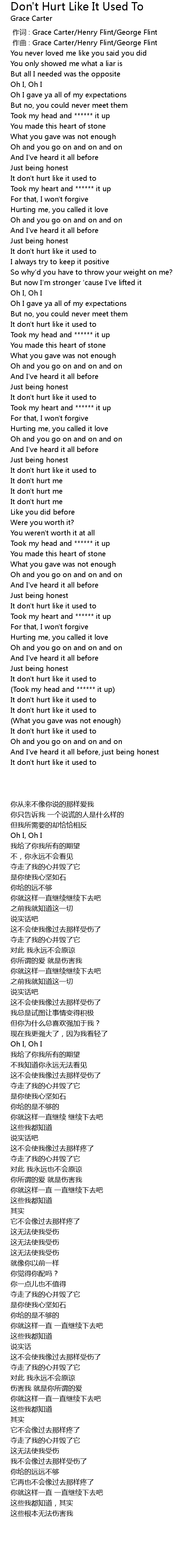 | [00:00.000] | 作词 : Grace Carter/Henry Flint/George Flint |