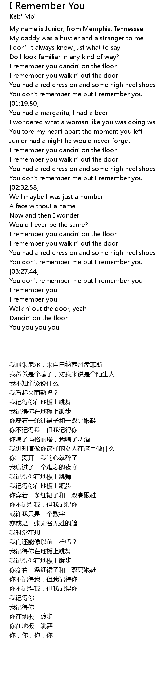 | [03:21.19] | You don' t remember me but I remember you |