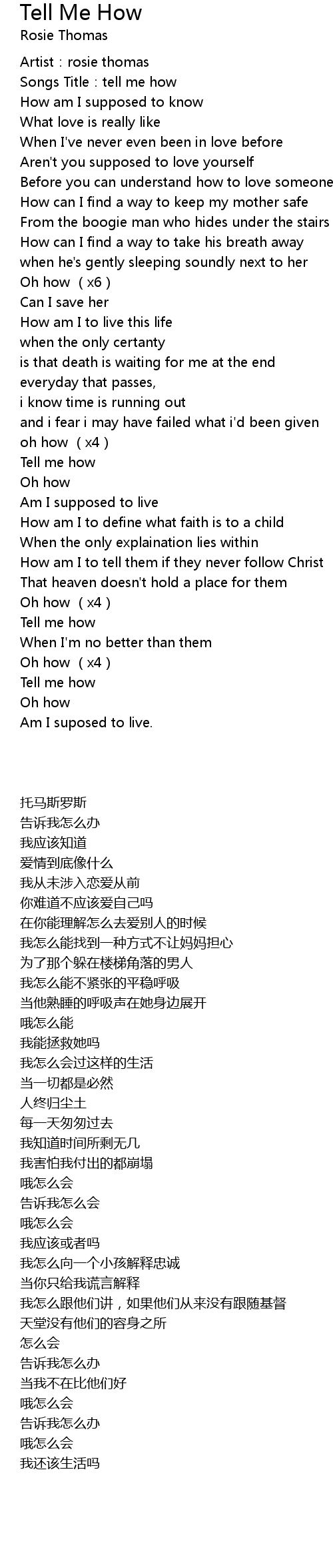 | [00:03.92] | Songs Title:tell me how |