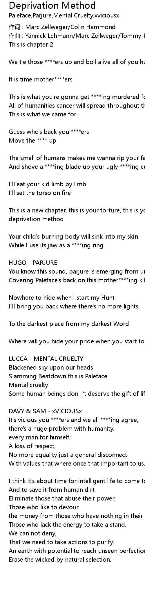 | This is a new chapter, this is your torture, this is your death, this is your deprivation method | |