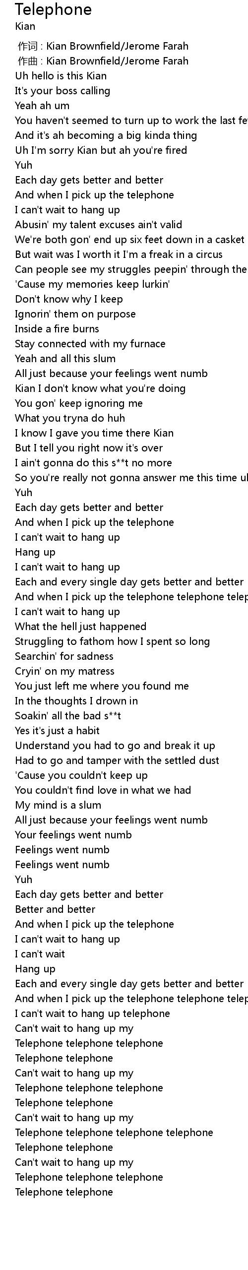 | [02:59.34] | And when I pick up the telephone telephone telephone |
