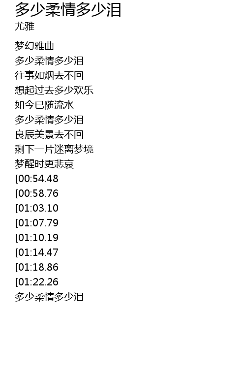 | [02:19.05][01:10.19] | 多少柔情多少泪 |