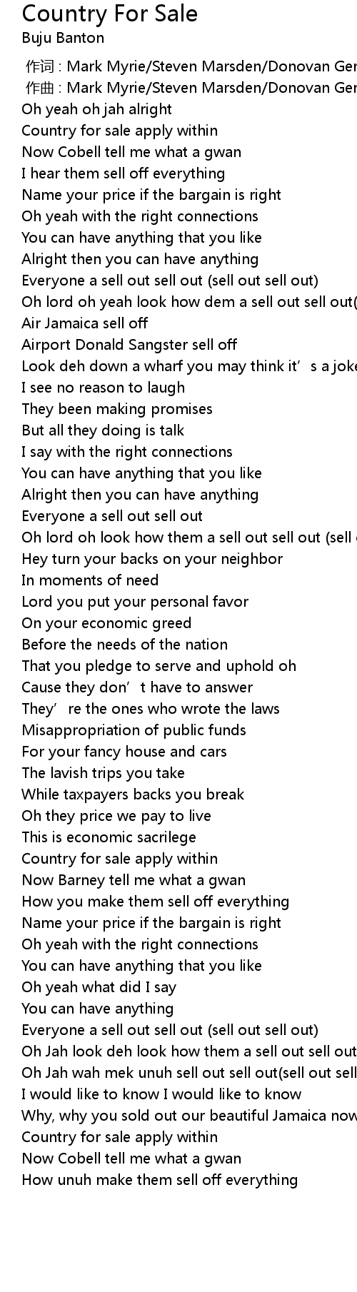 | [03:23.43] | Oh Jah wah mek unuh sell out sell out sell out sell out |