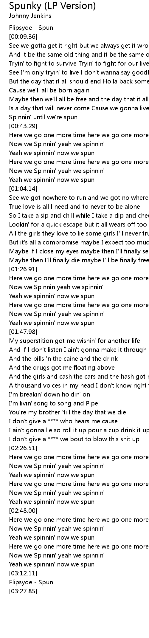 Spinnin' until we're spun |