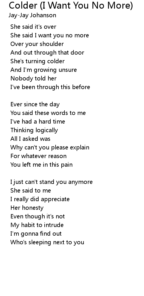 | Song | Colder (I Want You No More) |