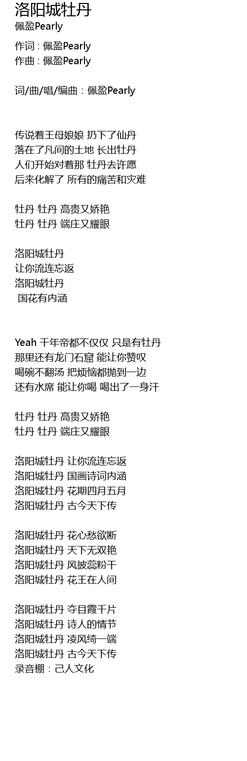 | 词/曲/唱/编曲:佩盈Pearly | |