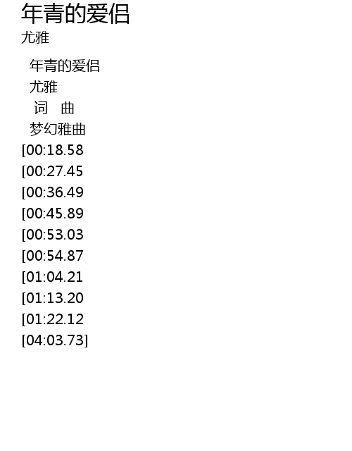 | [02:44.46][00:18.58] | 年青的爱侣在徘徊 |