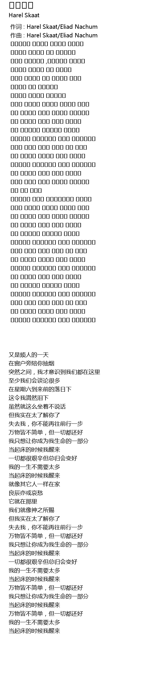 | [00:00.000] | 作词 : Harel Skaat/Eliad Nachum |