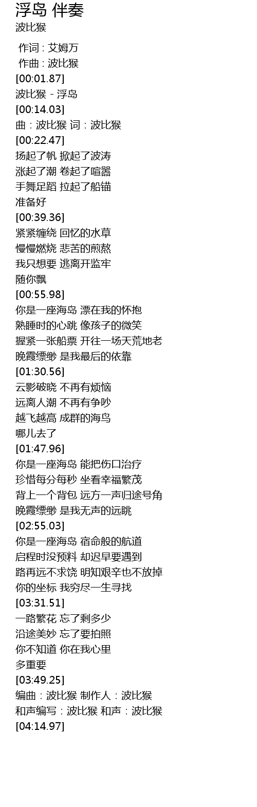 | [00:07.16] | 波比猴 - 浮岛 |