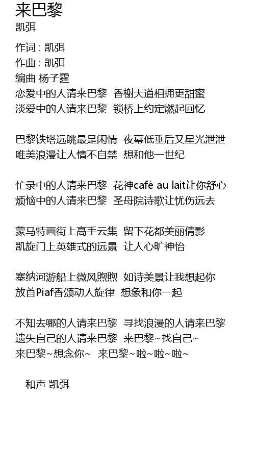 | 来巴黎~想念你~ 来巴黎~啦~啦~啦~ | |