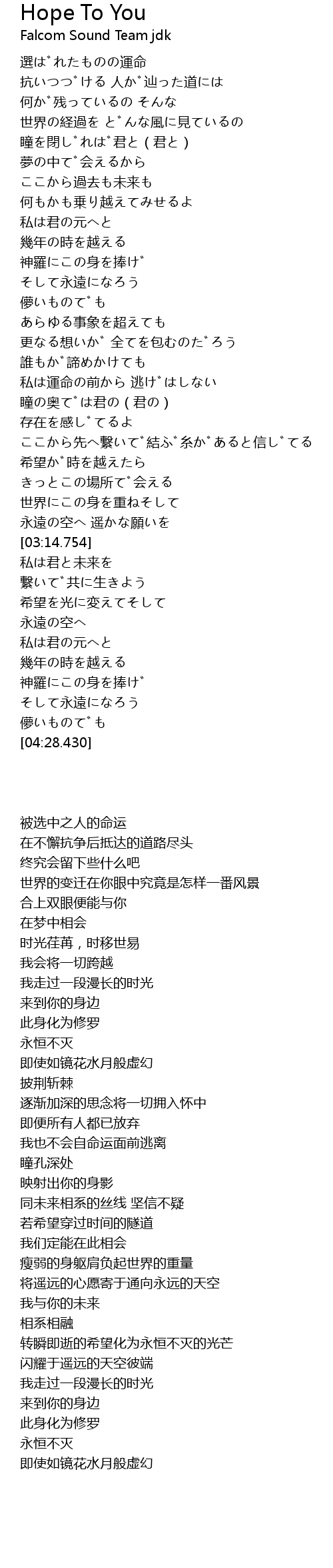 | [02:58.774] | 永遠の空へ 遥かな願いを |