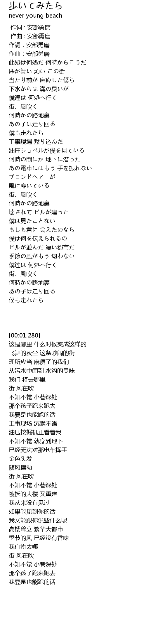 | [00:01.280] | 作詞:安部勇磨 |
