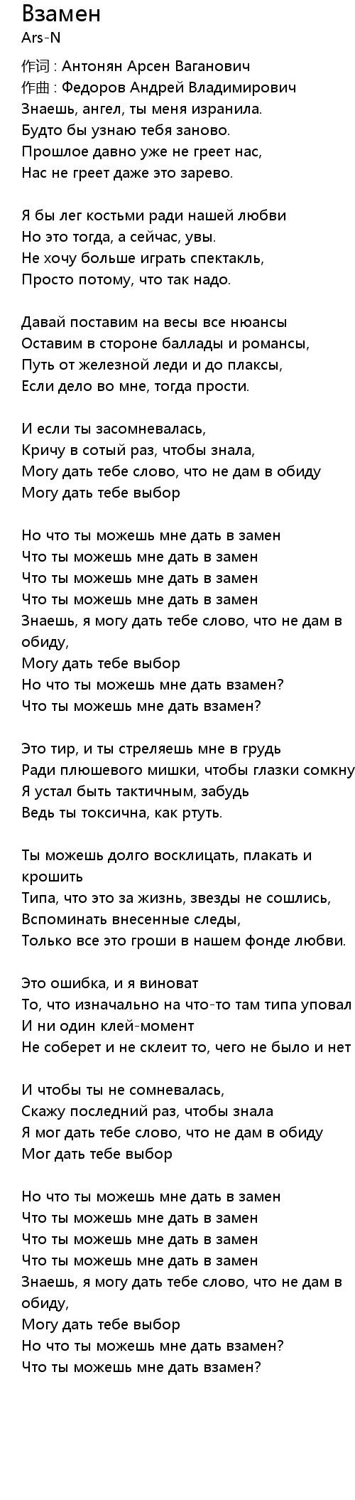 Взамен  Lyrics