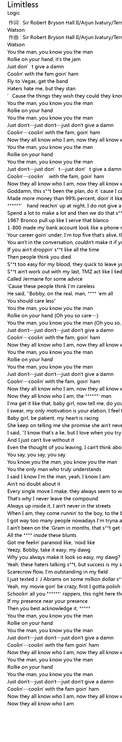 | [01:54.74] | Now they all know who I am, the ******' man |