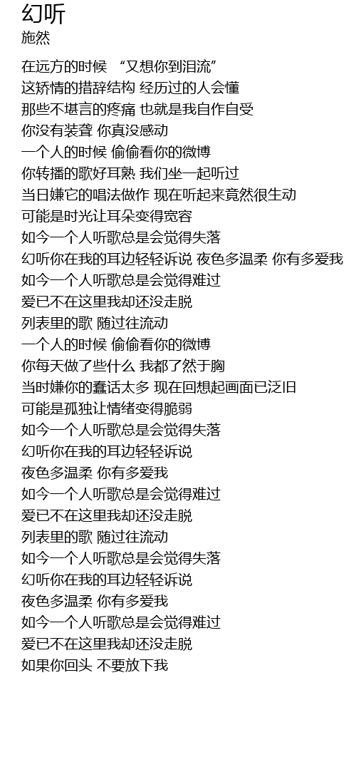 | [01:44.925] | 幻听你在我的耳边轻轻诉说 夜色多温柔 你有多爱我 |