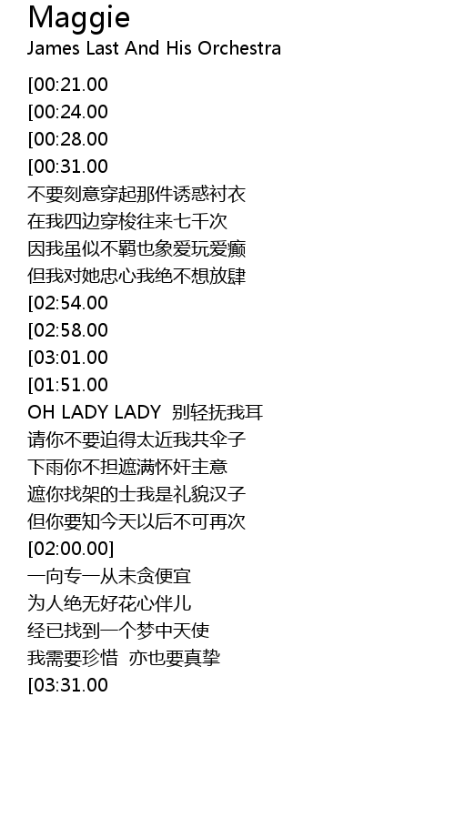 | [03:15.00][03:01.00][01:47.00][01:03.00] | MY MY MY MY MAGGIE shi suo lian nv zi |