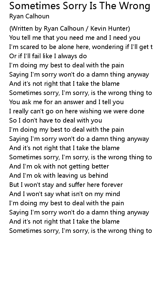 Song Sometimes Sorry Is The Wrong Thing To Say