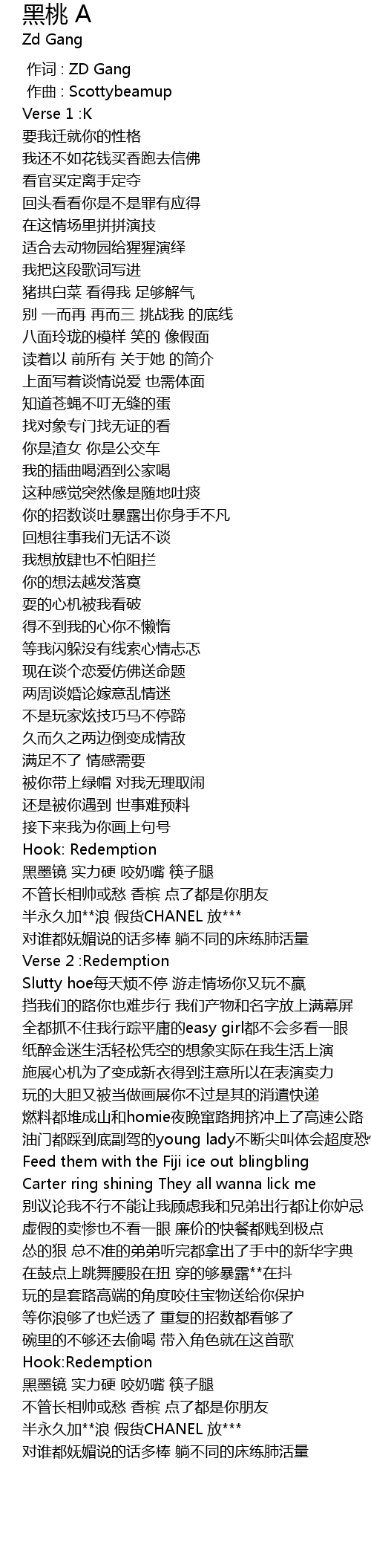 | [01:30.601] | Slutty hoe mei tian fan bu ting you zou qing chang ni you wan bu ying |