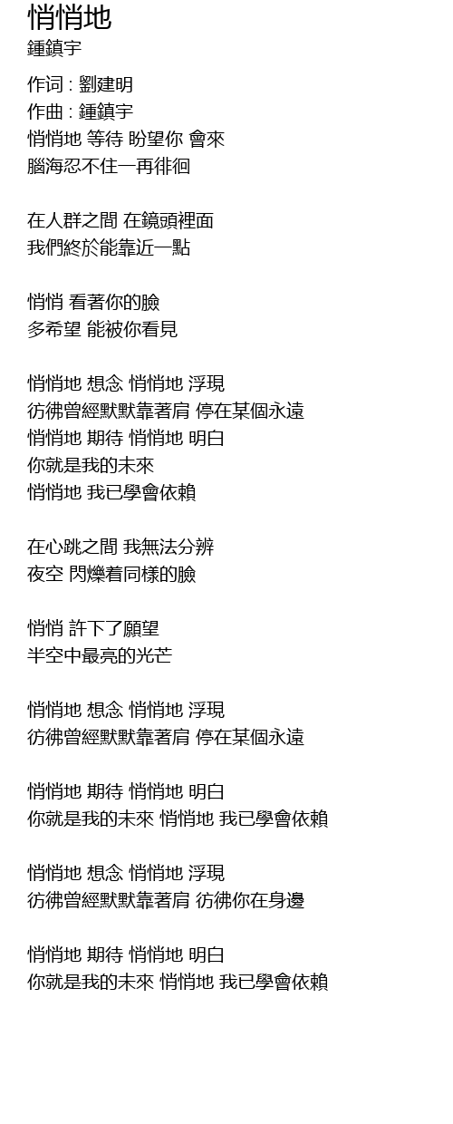 | 你就是我的未來 悄悄地 我已學會依賴 |
