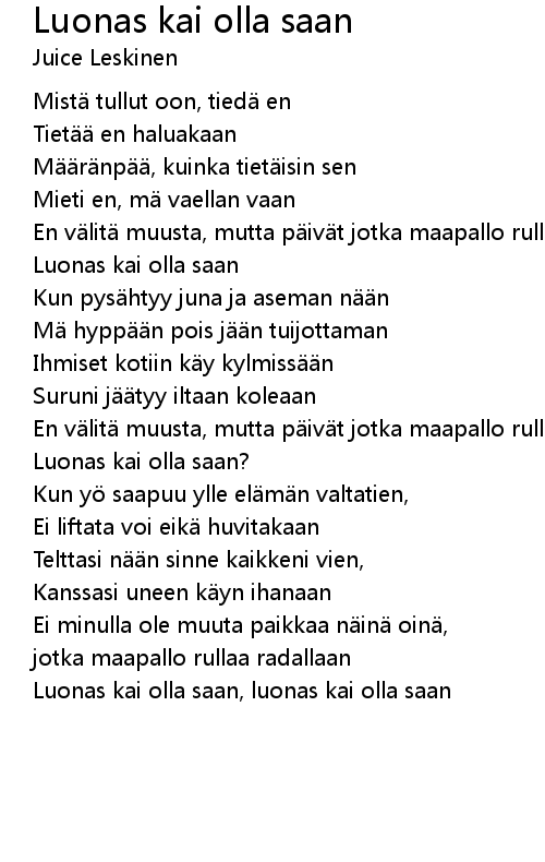 | En v lit muusta, mutta p iv t jotka maapallo rullaa radallaan. | |