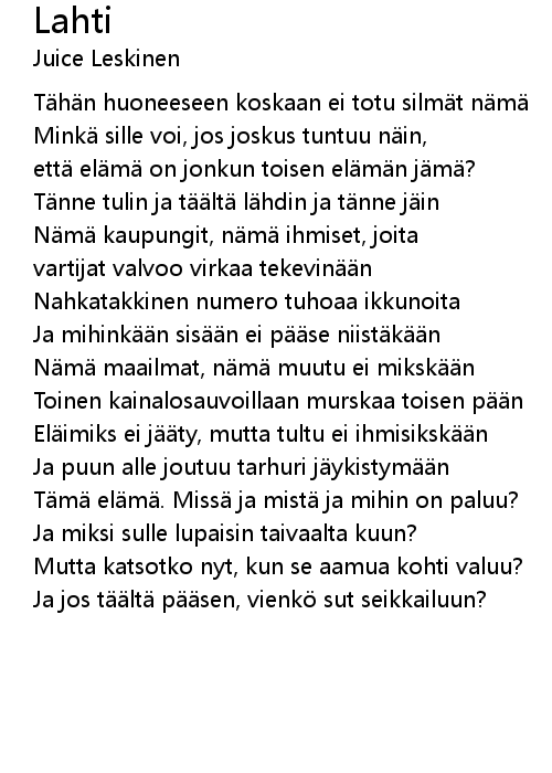 | Song | Lahti |