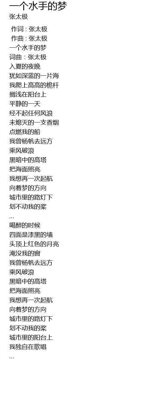 | [00:00.00] | yí gè shuǐ shǒu de mèng |