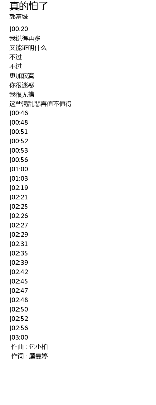 | [03:32][02:39][01:26] | wǒ zhēn de pà le |