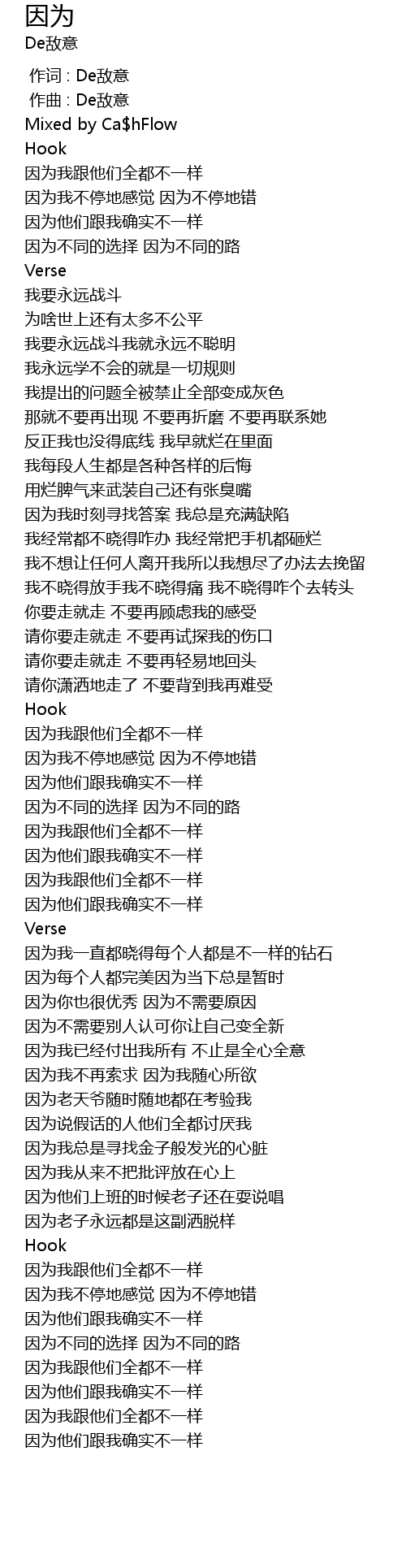 | [00:13.326] | 因为我跟他们全都不一样 |