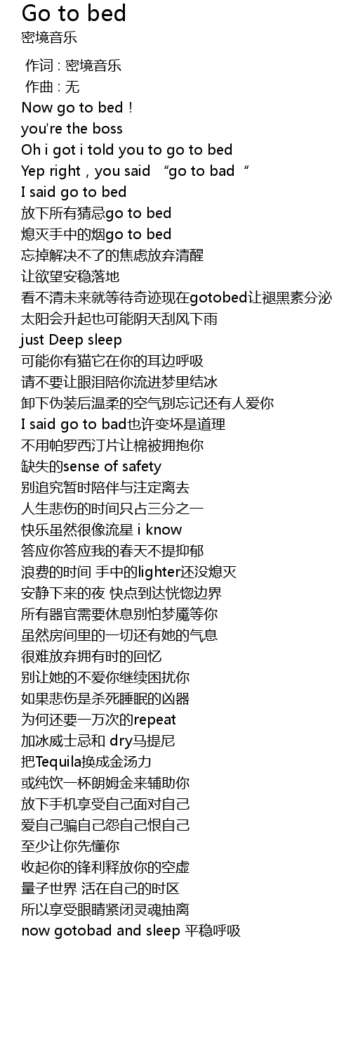 | [02:02.311] | now gotobad and sleep 平稳呼吸 |