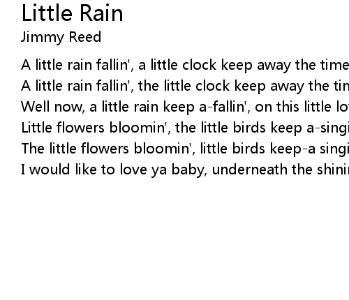 | Well now, a little rain keep a-fallin', on this little love of mine | |