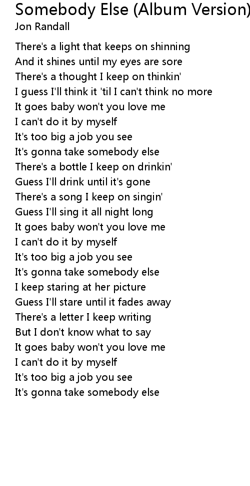 It's gonna take somebody else |