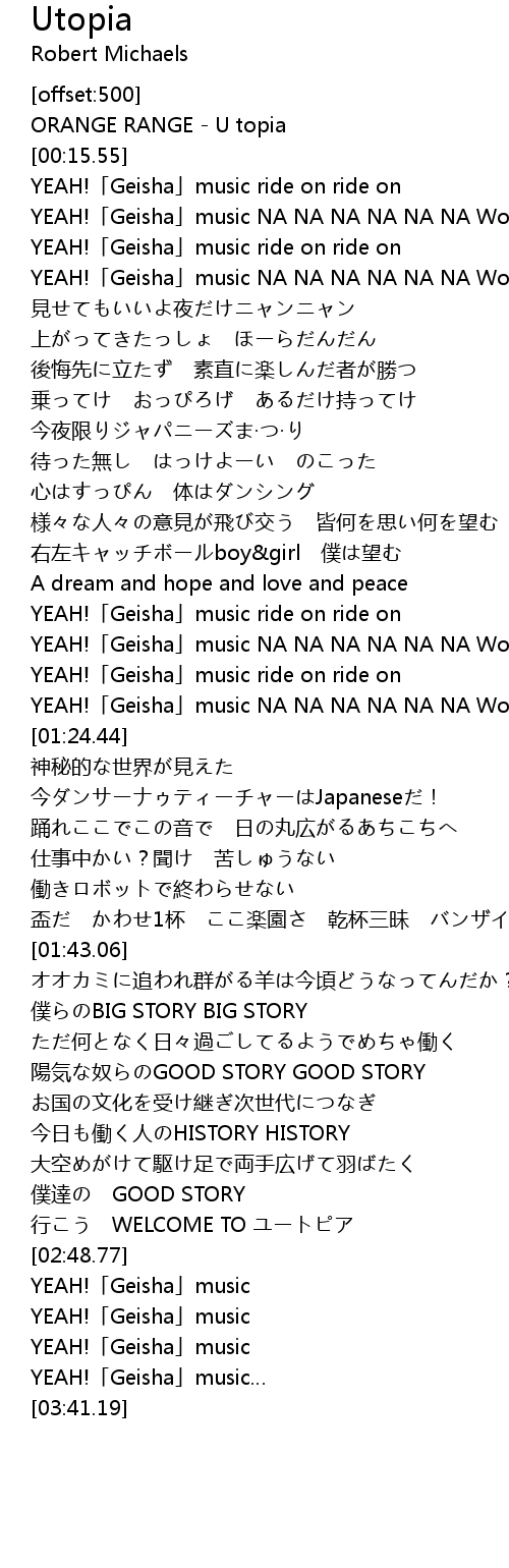 | [02:46.09] | 行こう WELCOME TO ユートピア |