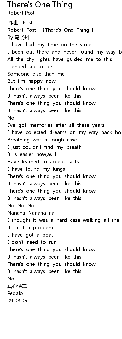 | [00:00.38] | Robert Post--【There's One Thing 】 |