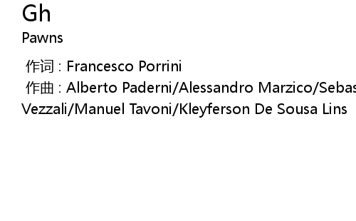 | [00:00.000] | 作曲 : Alberto Paderni/Alessandro Marzico/Sebastiano Vezzali/Manuel Tavoni/Kleyferson De Sousa Lins |
